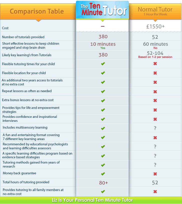 Rather than explain “The Ten Minute Tutor,” come with me and have a look inside the program for yourself and you will see all these unique benefits.